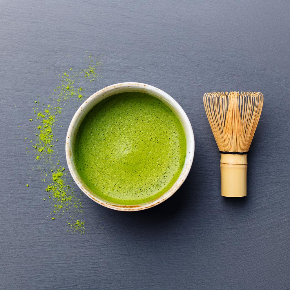 - ضع نصف ملعقة صغيرة من مسحوق الماتشا في كوب.