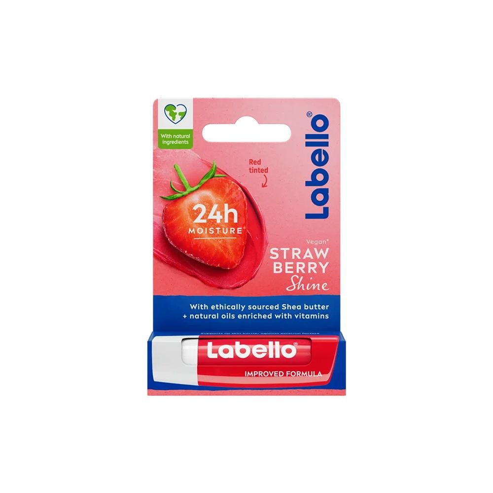 Labello, Strawberry Lip Balm – 4.8 g, is a rich and tinted lip balm that provides instant and long-lasting hydration, with an attractive red shade for a shiny and lively appearance, enriched with shea butter and natural oils packed with vitamins to protect and nourish the lips.