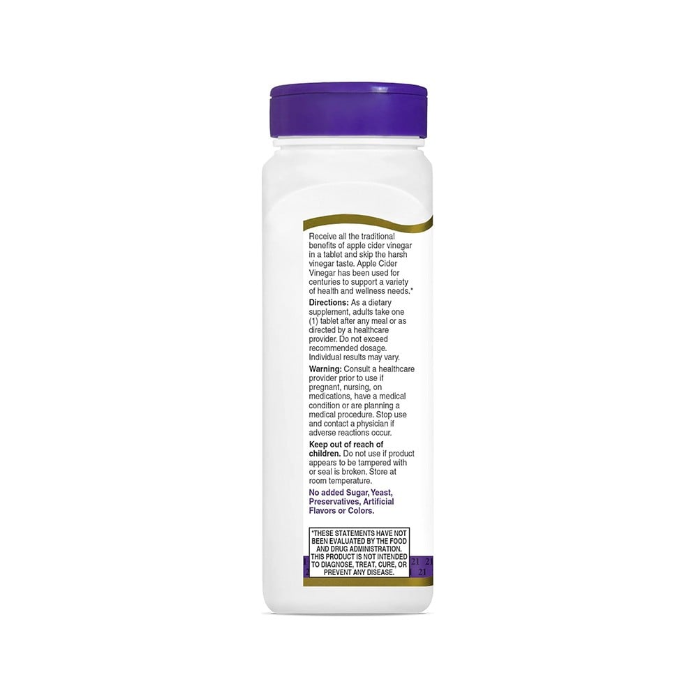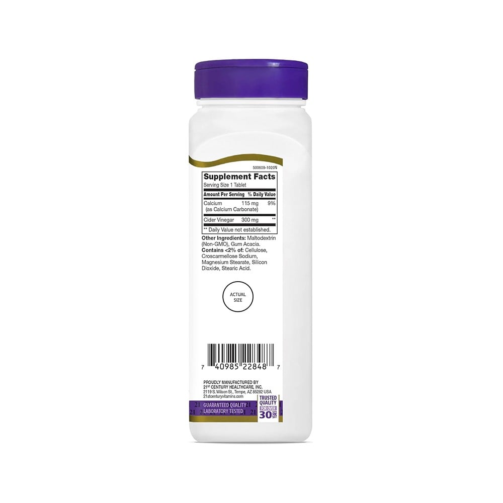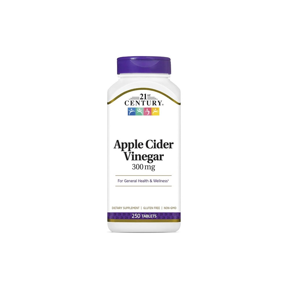 21st Century Apple Cider Vinegar Tablets provide 300 mg of concentrated apple cider vinegar per tablet, offering the traditional benefits of liquid vinegar in a convenient, easy-to-take form — without the sour taste or acidity. These tablets support healthy digestion, metabolism, and weight management naturally.