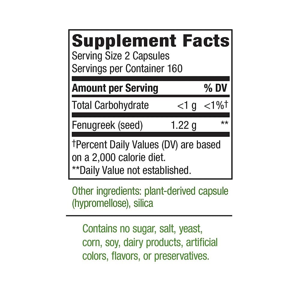 Nature's Way, Fenugreek Seed, Traditional Lactation Support, 1220 mg, Dietary Supplement - 320 Vegan Capsules