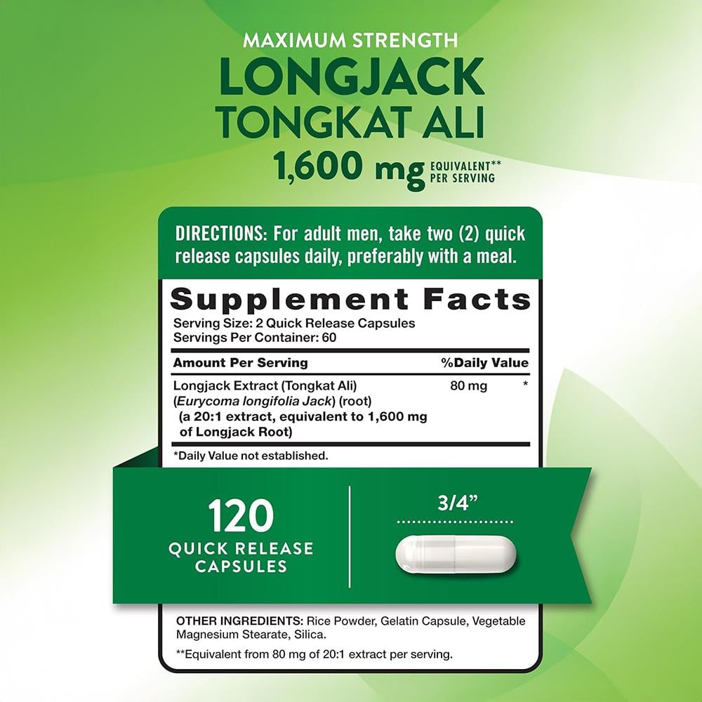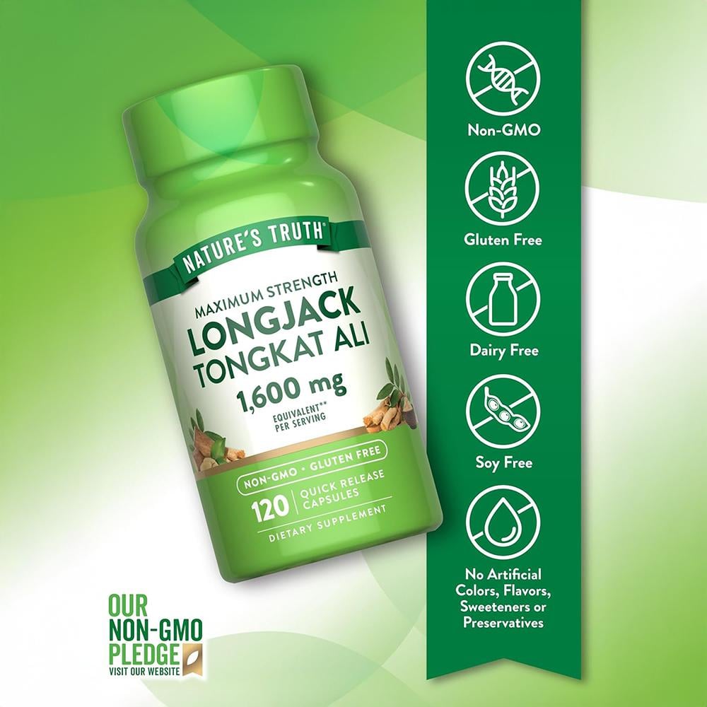 This Nature’s Truth Longjack Tongkat Ali supplement delivers a potent natural formula featuring 1600 mg of Tongkat Ali extract per serving to support male vitality, energy, and endurance. It helps promote healthy testosterone levels, boost performance, and enhance overall physical and mental well-being.